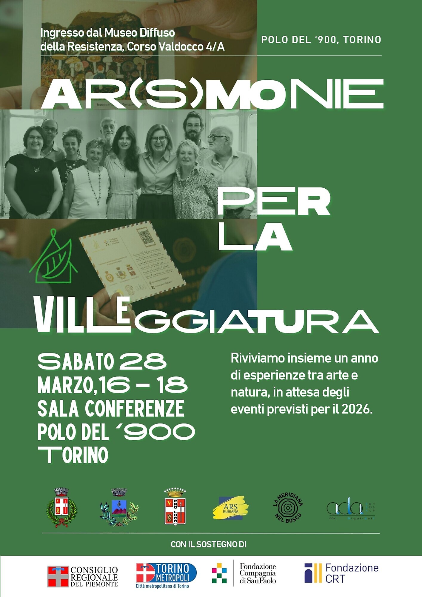 Sabato 28 marzo, al Polo del ‘900, a Torino, l’Associazione Ar(s)monie per la villeggiatura vi invita a rivivere insieme un anno di esperienze tra arte e natura, raccontando le attività che hanno animato il territorio di Rubiana e di Viù.