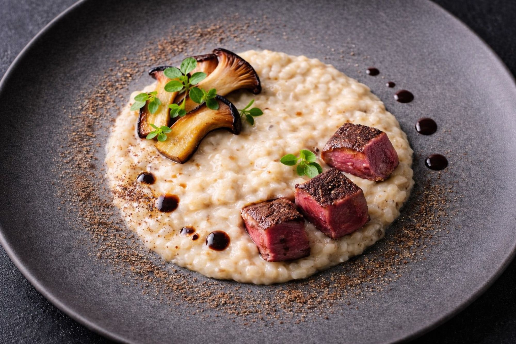 Nel cuore del bosco: Carnaroli, cardoncelli arrostiti, cinghiale affumicato, porcino abbinato a Langhe Nebbiolo