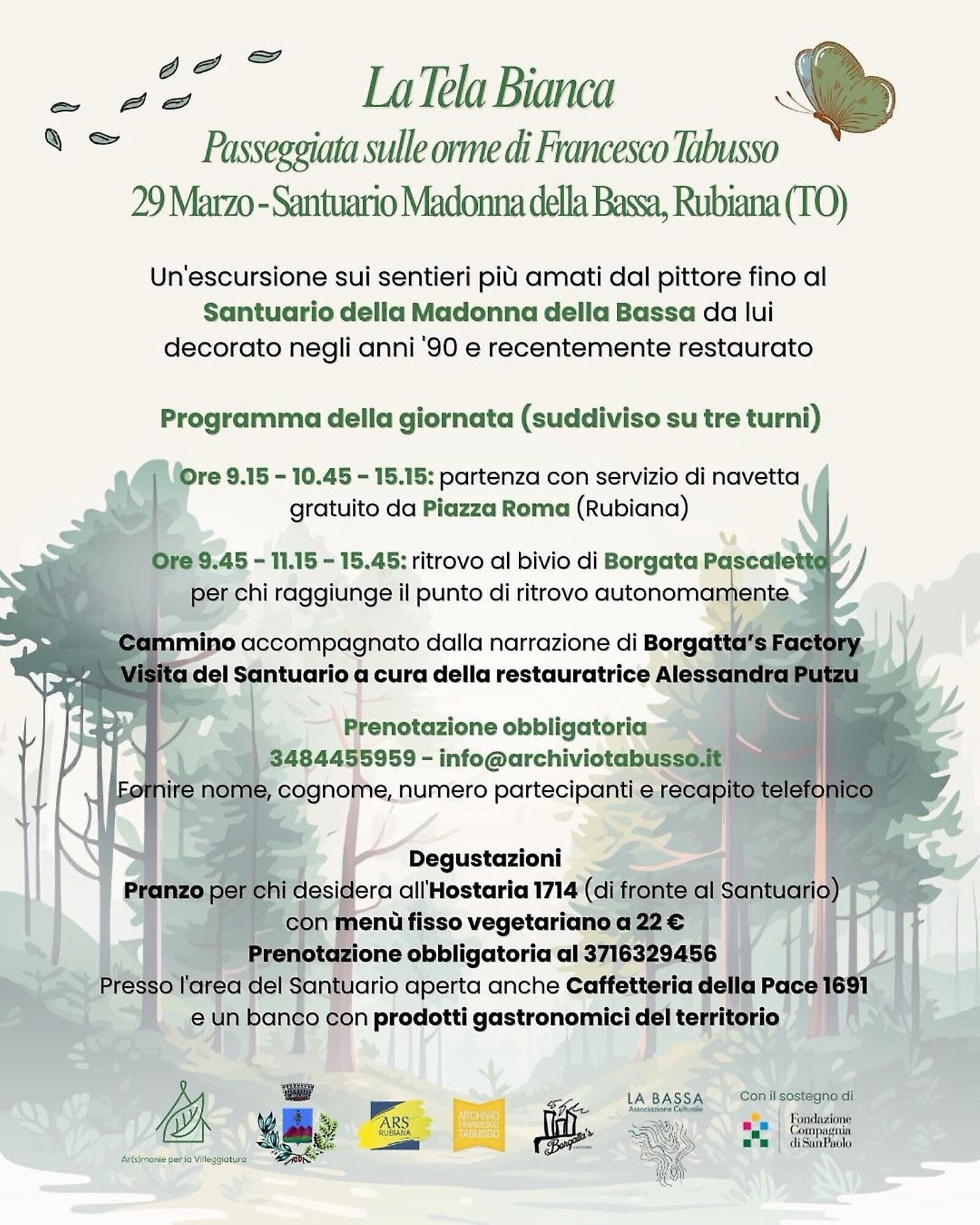 Per prenotare l’escursione è necessario contattare il numero 348 445 5959 o scrivere a info@archiviotabusso.it, indicando nome, cognome, numero dei partecipanti e recapito telefonico.
