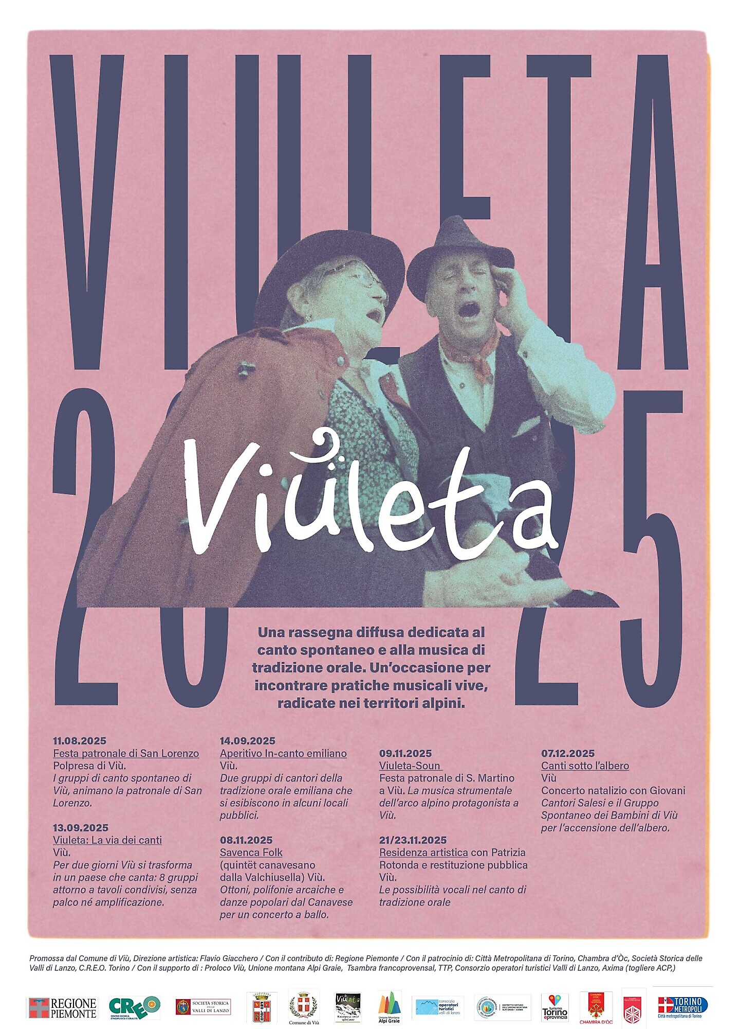 L’evento è in concomitanza con la Fiera di San Martino, data che nel mondo contadino riveste un significato molto importante, la Viuleta-soun ci accompagnerà con i suoi appuntamenti fino ai Canti sotto l’Albero di dicembre, un’intera stagione di suoni e incontri attraversa il paese di Viù: canto spontaneo, musica strumentale, residenze e momenti condivisi che custodiscono e rinnovano una tradizione viva.