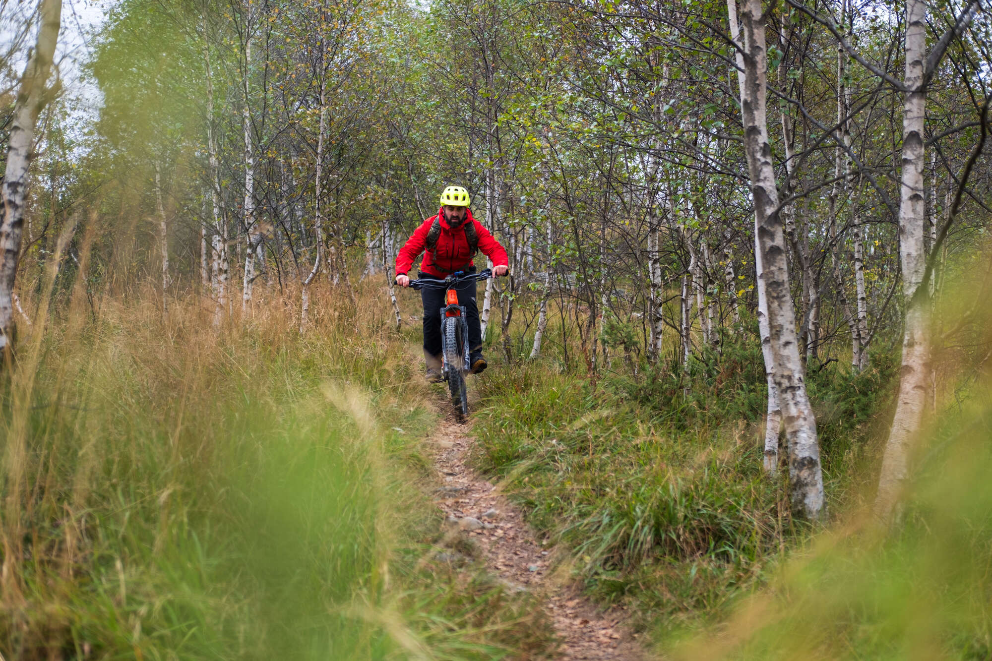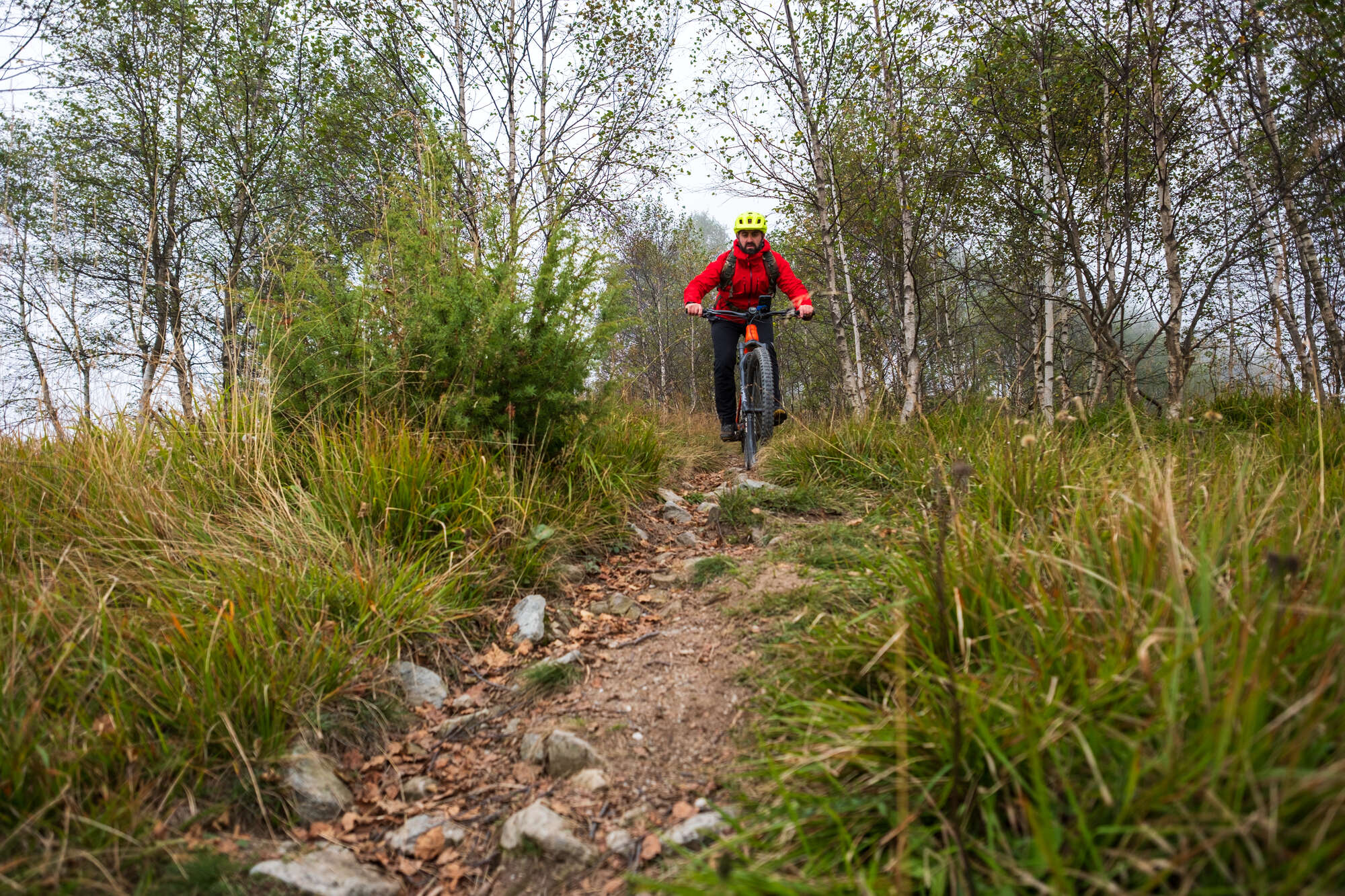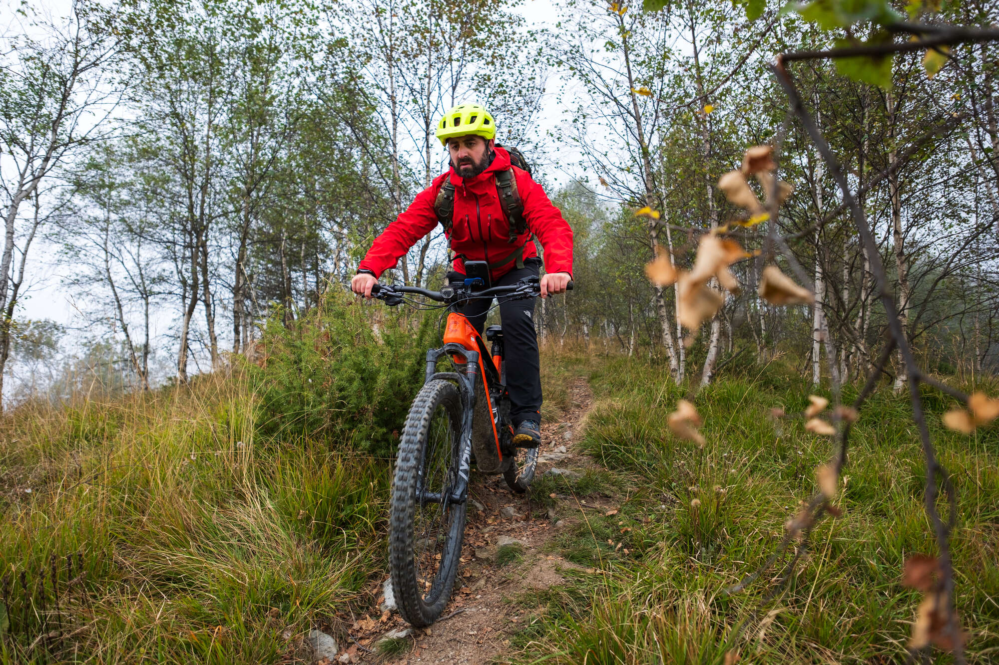 Per una discesa tranquilla si può ripercorrere lo stesso tragitto dell’andata. Chi invece desidera aggiungere un pizzico di adrenalina può percorrere al ritorno brevi single track che tagliano i tornanti (in tal caso la difficoltà diventa BC). Il primo si trova all’incirca a 1.600 m di quota, appena prima di tornare al colle della Forchetta, e presenta un’uscita un po’ tecnica. Il secondo parte proprio dal colle: occorre imboccare la sterrata chiusa da una sbarra diretta verso sud. Dopo duecento metri la si lascia per un bellissimo sentiero che si stacca a destra serpeggiando tra le betulle. Quando improvvisamente pare esaurirsi lo si riprende qualche metro più a monte per scendere nei pressi delle belle baite dell’alpe san Barbara (1.504 m, fontana). Prendere la sterrata inerbita di accesso che scende verso il colle di san Giacomo (1.460 m), dove si confluisce su una sterrata. Seguendola per un breve tratto verso sinistra intercettare un ultimo single track ancora a sinistra, molto divertente e con un’uscita un po’ tecnica. Tornati sulla strada non resta che seguirla a ritroso fino all’auto.