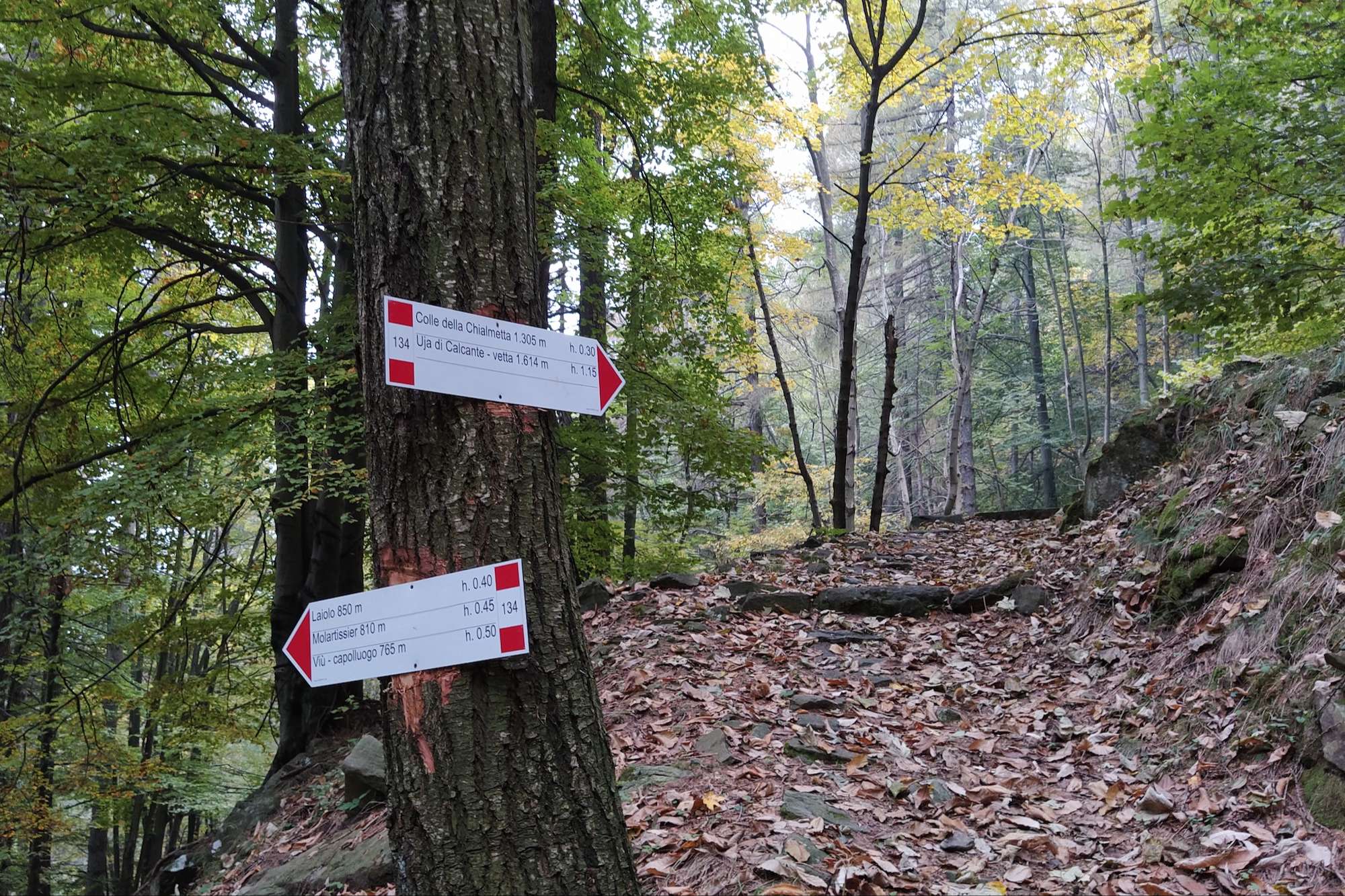 L’ambiente è suggestivo, con un bosco di faggi su cui svetta la cima dell’Uja di Calcante, ben visibile dal colle. La cima è raggiungibile con una deviazione di circa 45 minuti per chi volesse godere di un bel panorama sulla bassa Val di Viù.