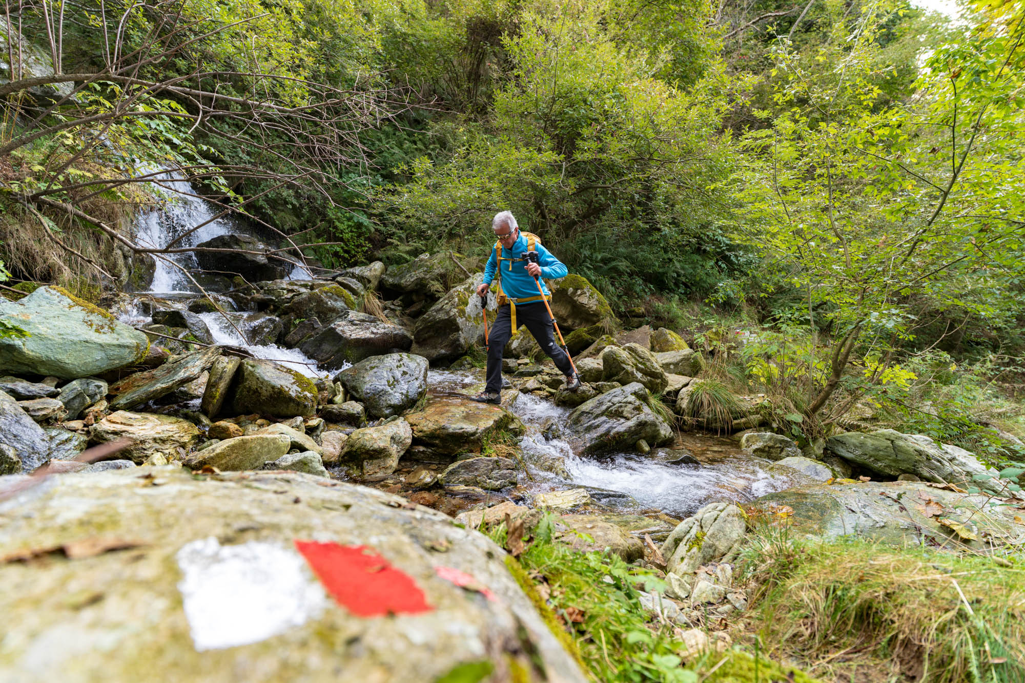 Molto più in basso, poche decine di metri a valle della bella borgata case Rui (1.112 m), svoltare a sinistra su un sentiero che affianca un grande casolare. Lasciata proseguire la mulattiera, svoltare a sinistra tra i faggi superando un’ultima volta l’affluente del Malone su un caratteristico ponte costituito da enormi lastre di roccia.