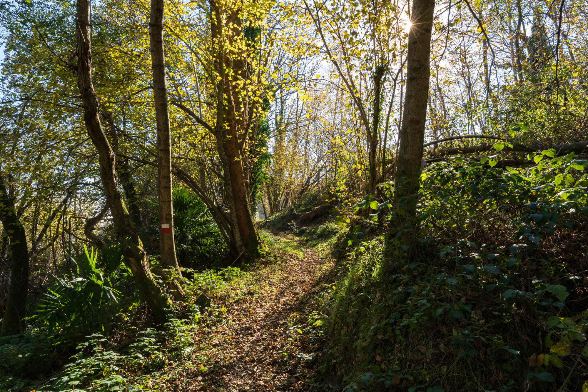 Superare la cappella dedicata a sant’Antonio di Padova, il cui campanile curiosamente è separato e addossato a un altro edificio. Subito dopo l’Osteria di campagna svoltare a sinistra per risalire una scalinata che presto diventa mulattiera. Giunti su una sterrata nei pressi delle case Gallo girare a sinistra fino a confluire su una strada asfaltata. Prenderla a destra per pochi passi per poi imboccare una mulattiera a destra.