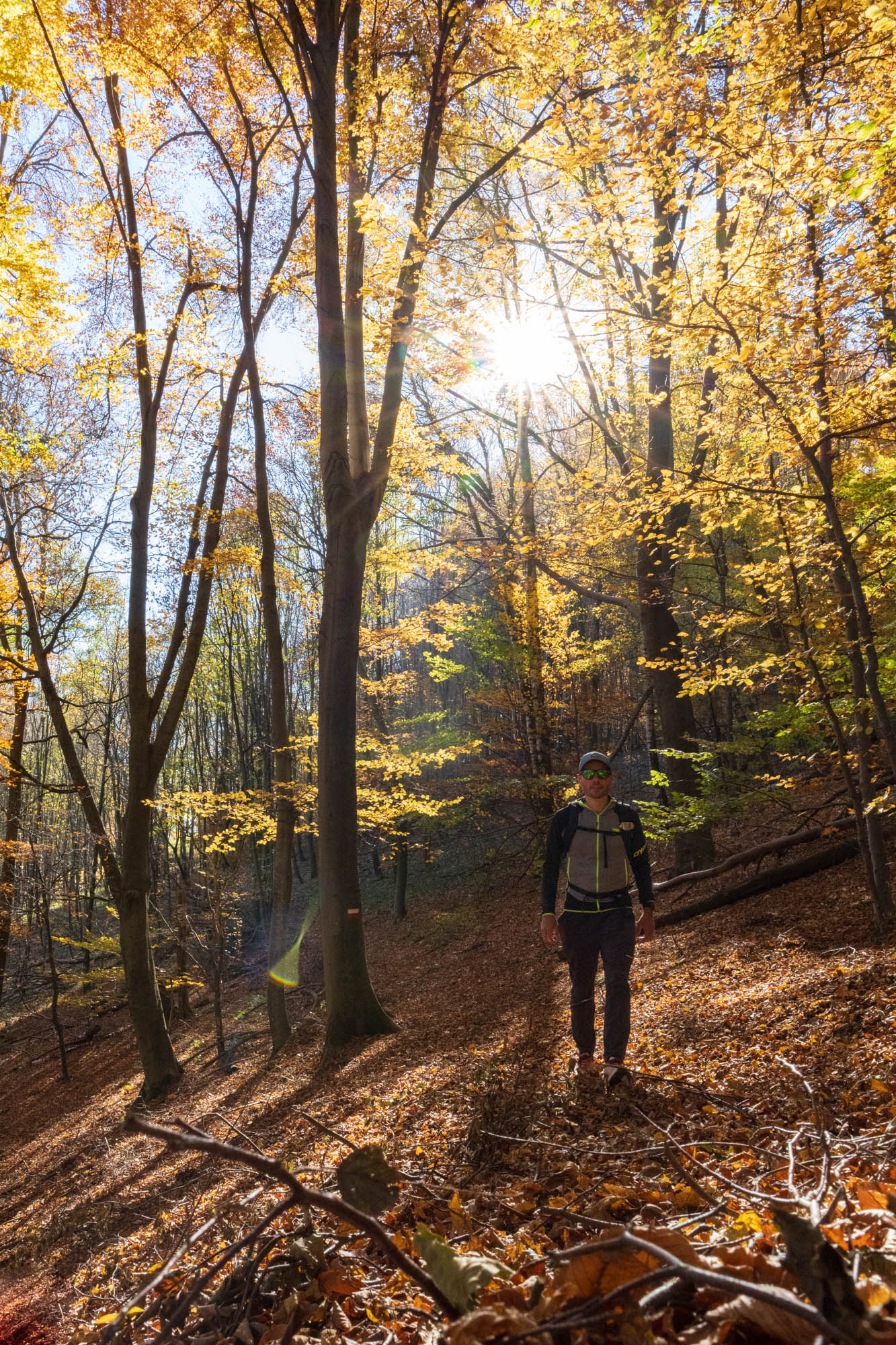 A un successivo bivio procedere dritto e con diversi saliscendi entrare in una faggeta. Il sentiero si restringe e taglia un pendio scosceso per poi attraversare un bosco misto. Molto più avanti si innesta su una mulattiera più ampia.