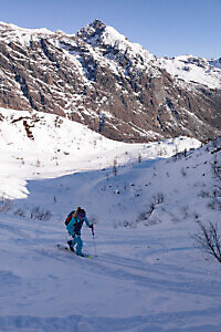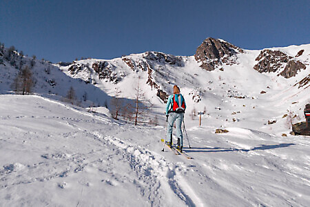 Itinerario poco conosciuto, ma molto interessante dal punto di vista paesaggistico e sciistico. La salita si svolge in luoghi isolati e selvaggi con un panorama mozzafiato verso le cime dell’alta val d’Ala. Il percorso non è però da sottovalutare: richiede condizioni di neve sicura, una buona capacità di valutazione dei pendii e un buon livello sciistico, pertanto è sconsigliato ai principianti.