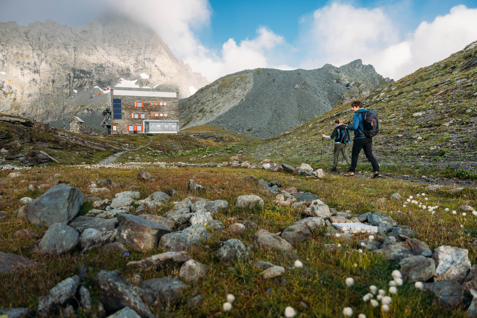 Il sentiero taglia le pareti della Rocca Turo, risale un valloncello e sbuca nell’ampia conca glaciale del Crot del Ciaussinè ai piedi della maestosa Bessanese. In pochi minuti si giunge al rifugio Gastaldi (2.658 m), intitolato al geologo Bartolomeo Gastaldi, cofondatore del CAI.
