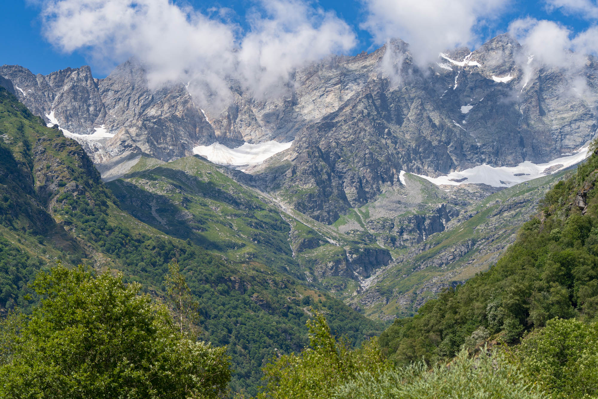 Poco più avanti l’argine del torrente è franato, ma lo si aggira agevolmente da destra. Lasciata a sinistra la vicina borgata Campo della Pietra proseguire sulla sterrata che corre appena sotto alla provinciale. Confluiti su un’altra sterrata la seguiamo verso sinistra percorrendo uno dei tratti più interessanti, con viste sensazionali verso l’anfiteatro di cime del vallone di Gura.