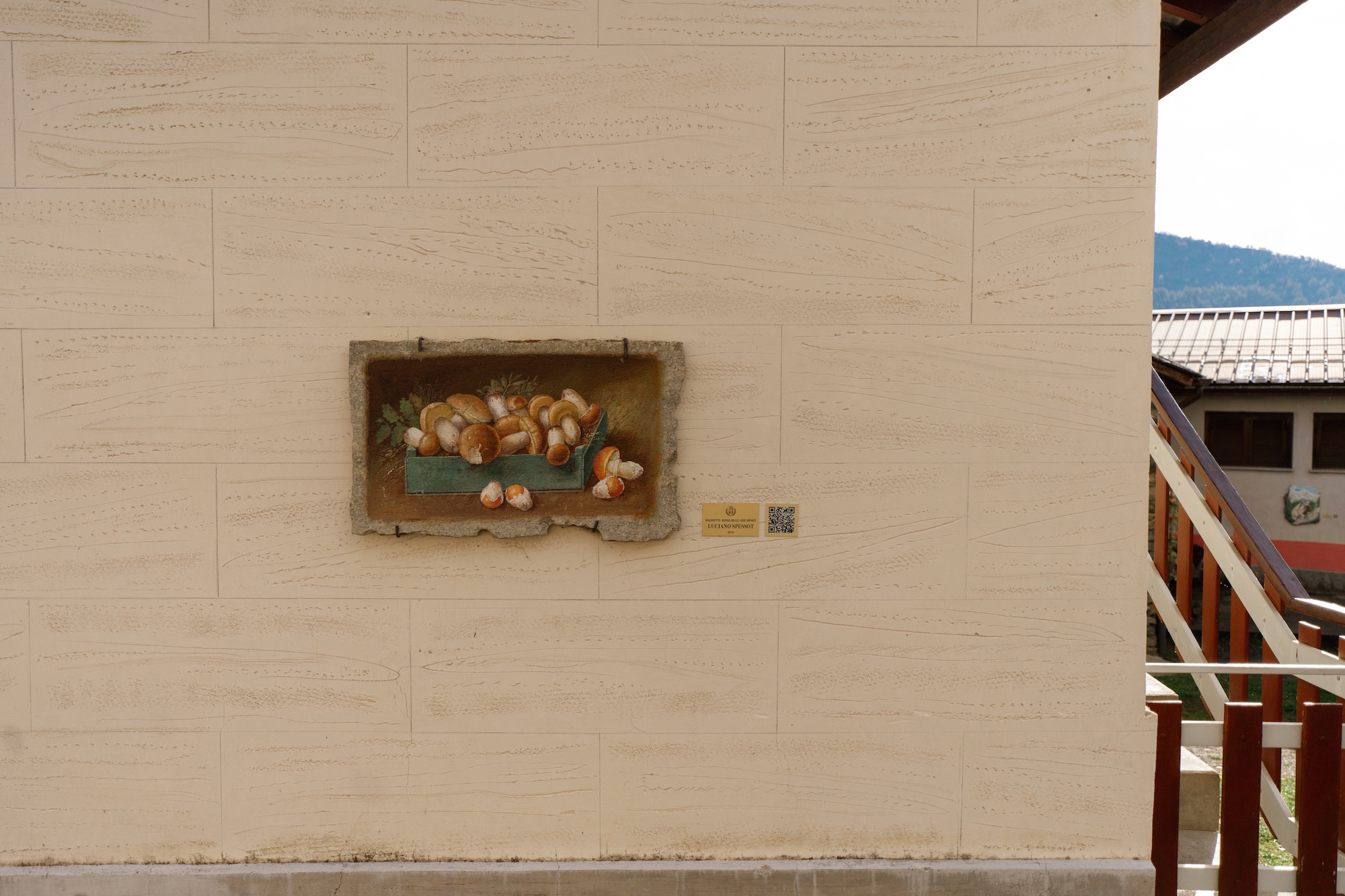 I lavori sono disseminati su tutta la frazione e sul vicino agglomerato della Meuja, presentano temi e tecniche che si legano al contesto territoriale: l’acqua, l’allevamento, i funghi, ma anche riflessioni più impegnative sul senso e le varie fasi della vita, sul tradizionale contrasto tra città e campagna, su simbologie e metafore tra il mondo degli uomini e quello degli animali.