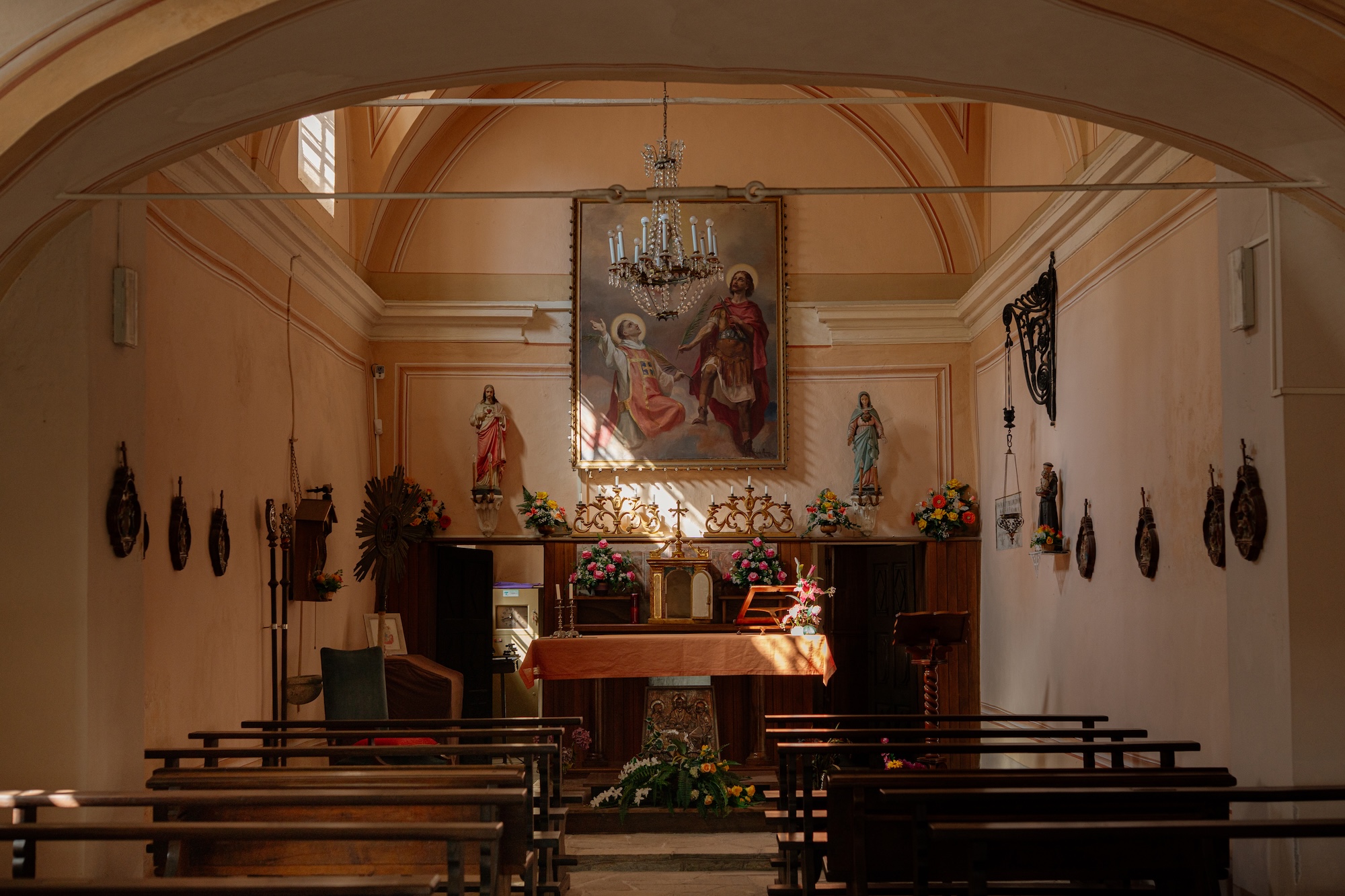 Gli affreschi cinquecenteschi della cappella documentano il passaggio clandestino della Sindone, messa in salvo tra queste montagne per ordine ducale. Si tratta della raffigurazione più antica del Piemonte, un gioiello d'arte che trasforma la chiesa in un testimone diretto del Rinascimento.