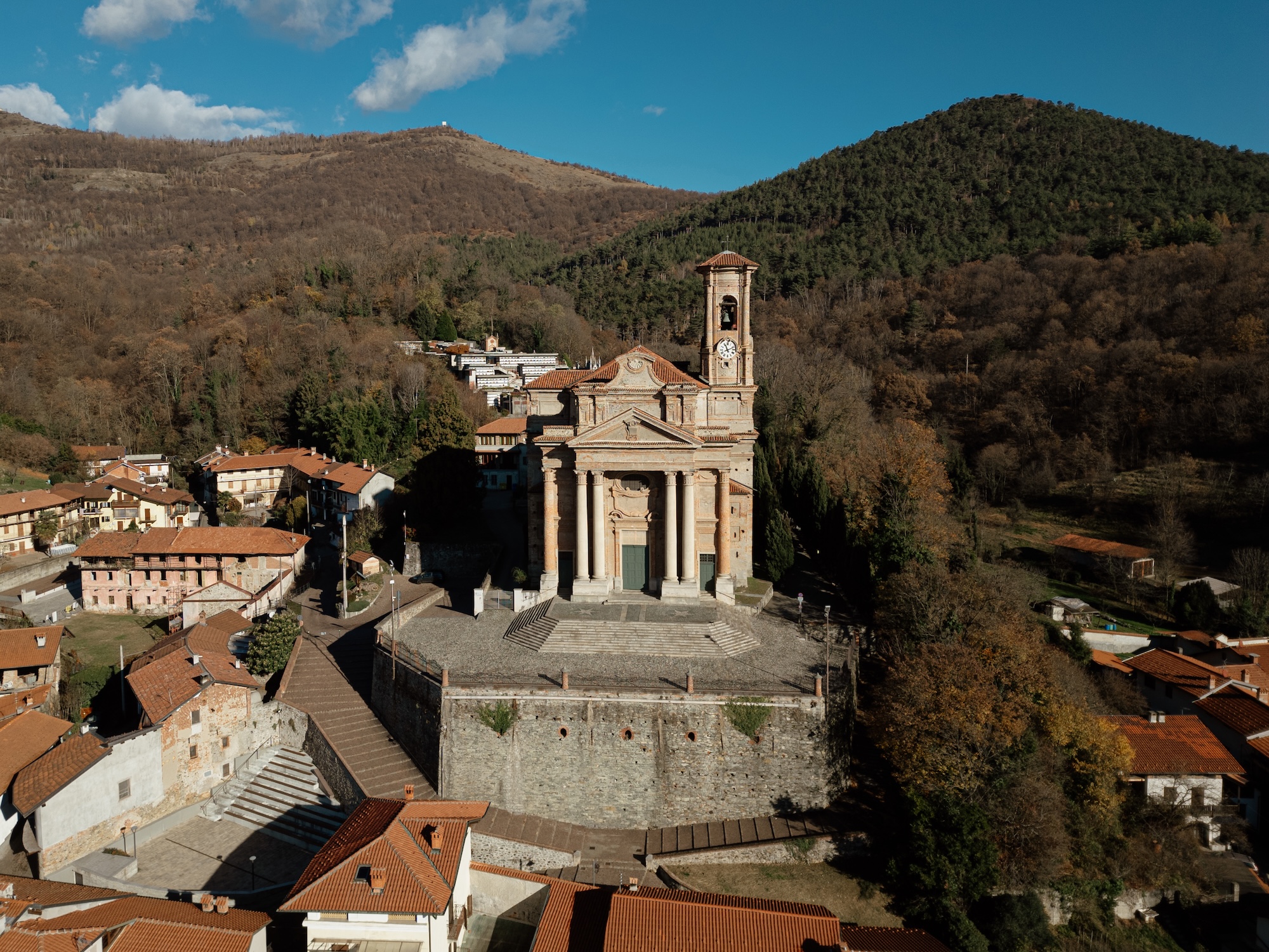 Imponente, luminosa e panoramica. Una chiesa barocca progettata dagli allievi dei grandi maestri torinesi, con interni pieni di luce e un sagrato che è un vero balcone sulle Alpi.