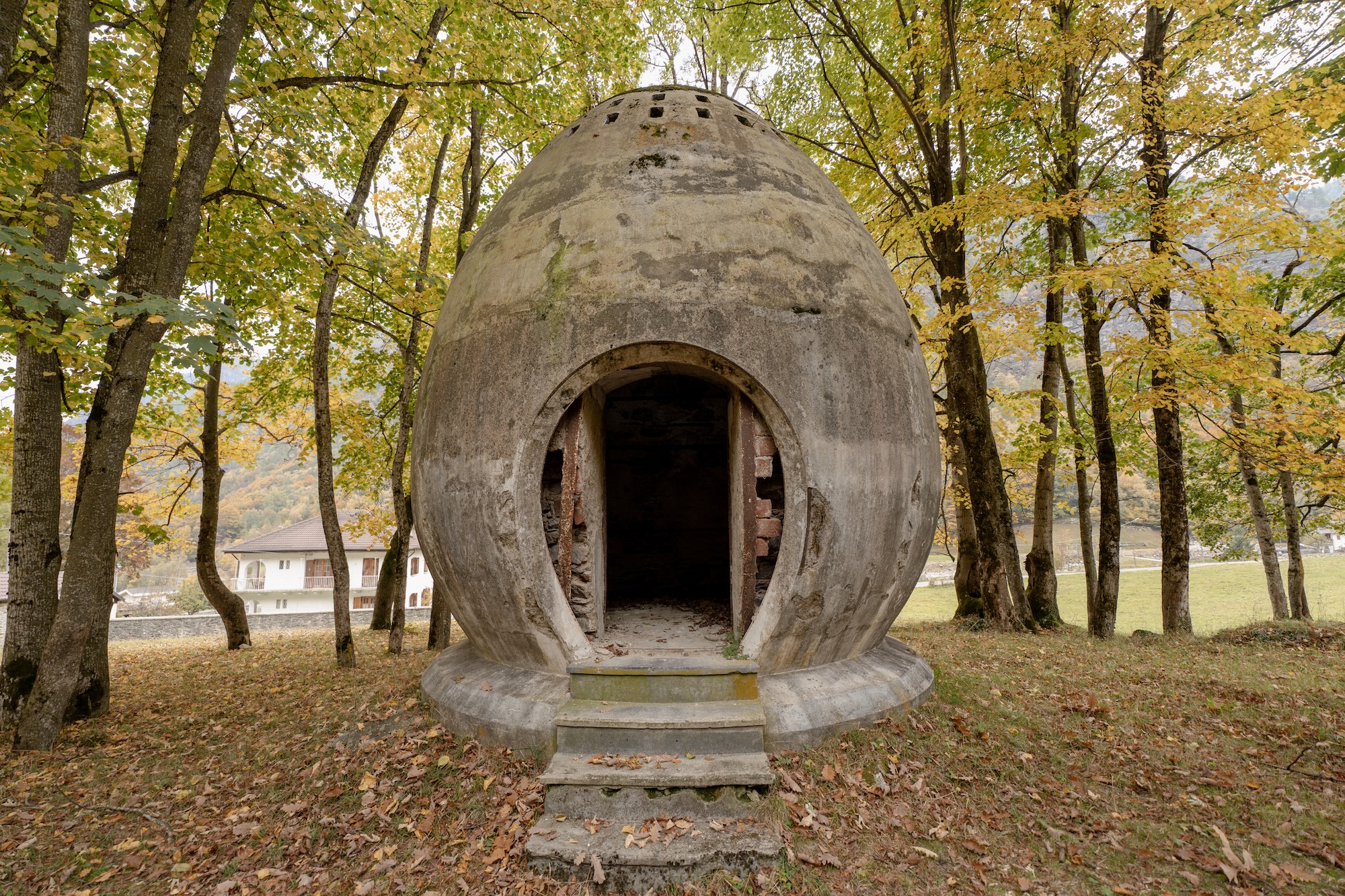 Si tratta di un gigantesco pollaio, alto oltre 6 metri, costruito in pietra locale e calcestruzzo, edificato nell’insolita forma di uovo.