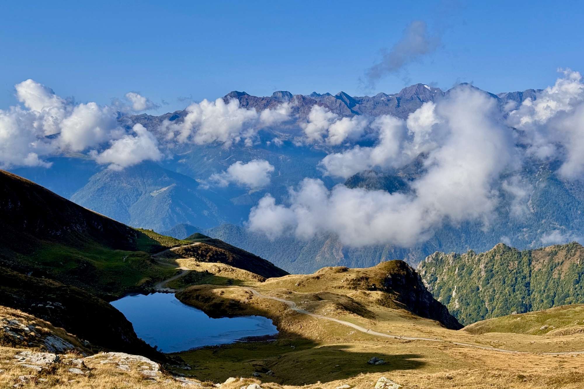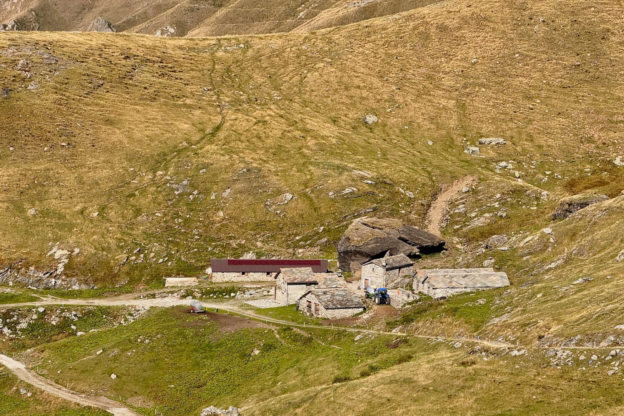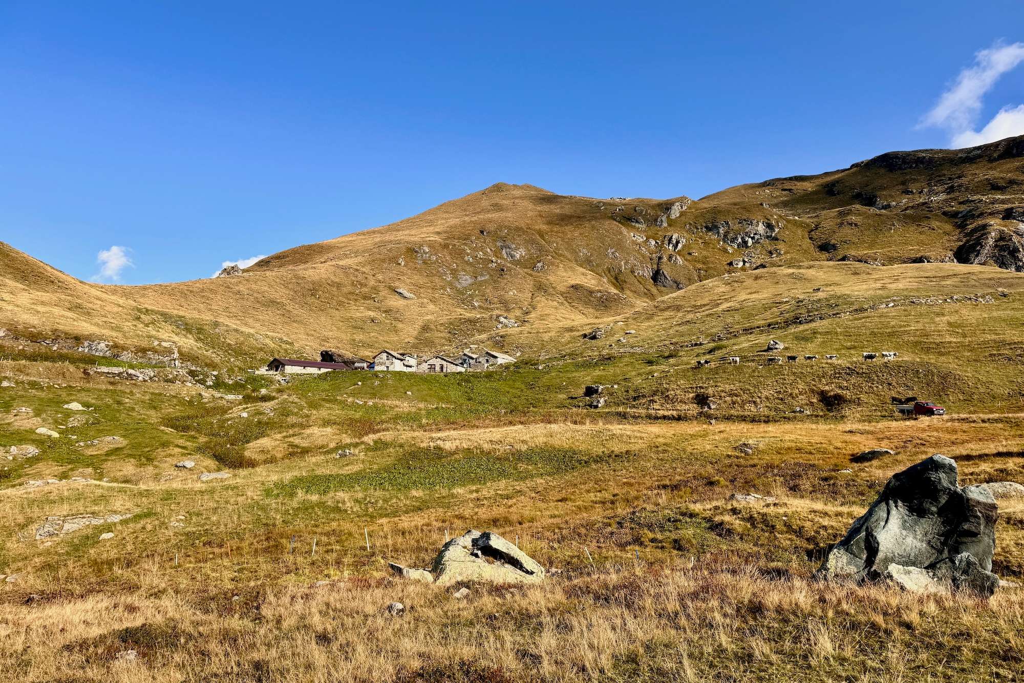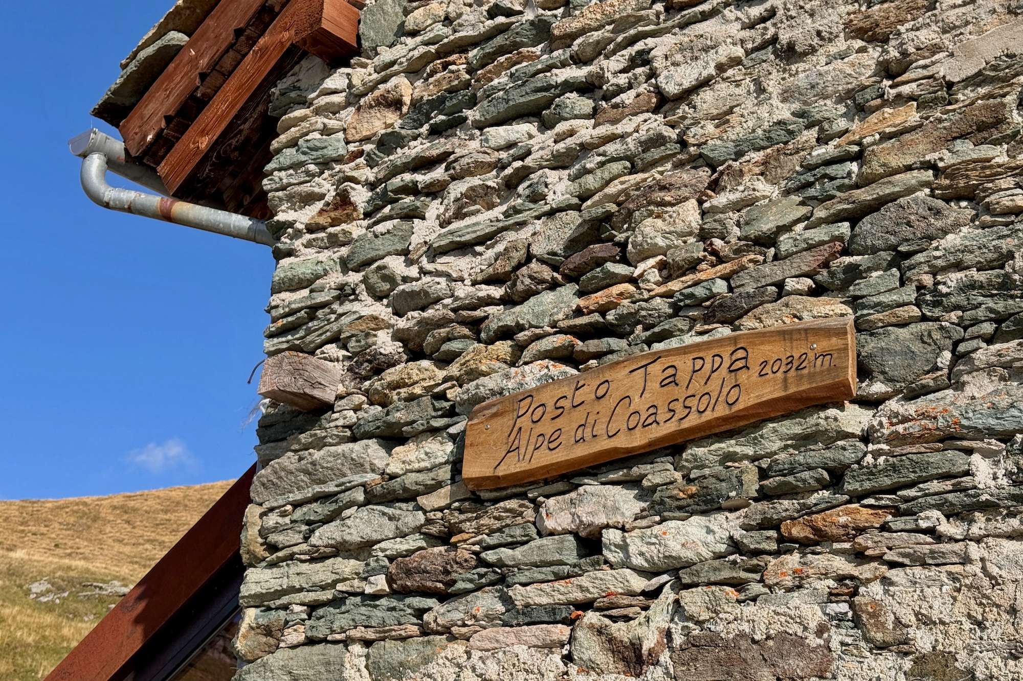 Giunti poco dopo il lago, proseguendo di circa 500m si arriva all’Alpe di Coassolo (2.032m) ove è possibile ammirare il piccolo alpeggio dove l’accostamento di pietra e legno danno un assaggio dell’architettura montana.