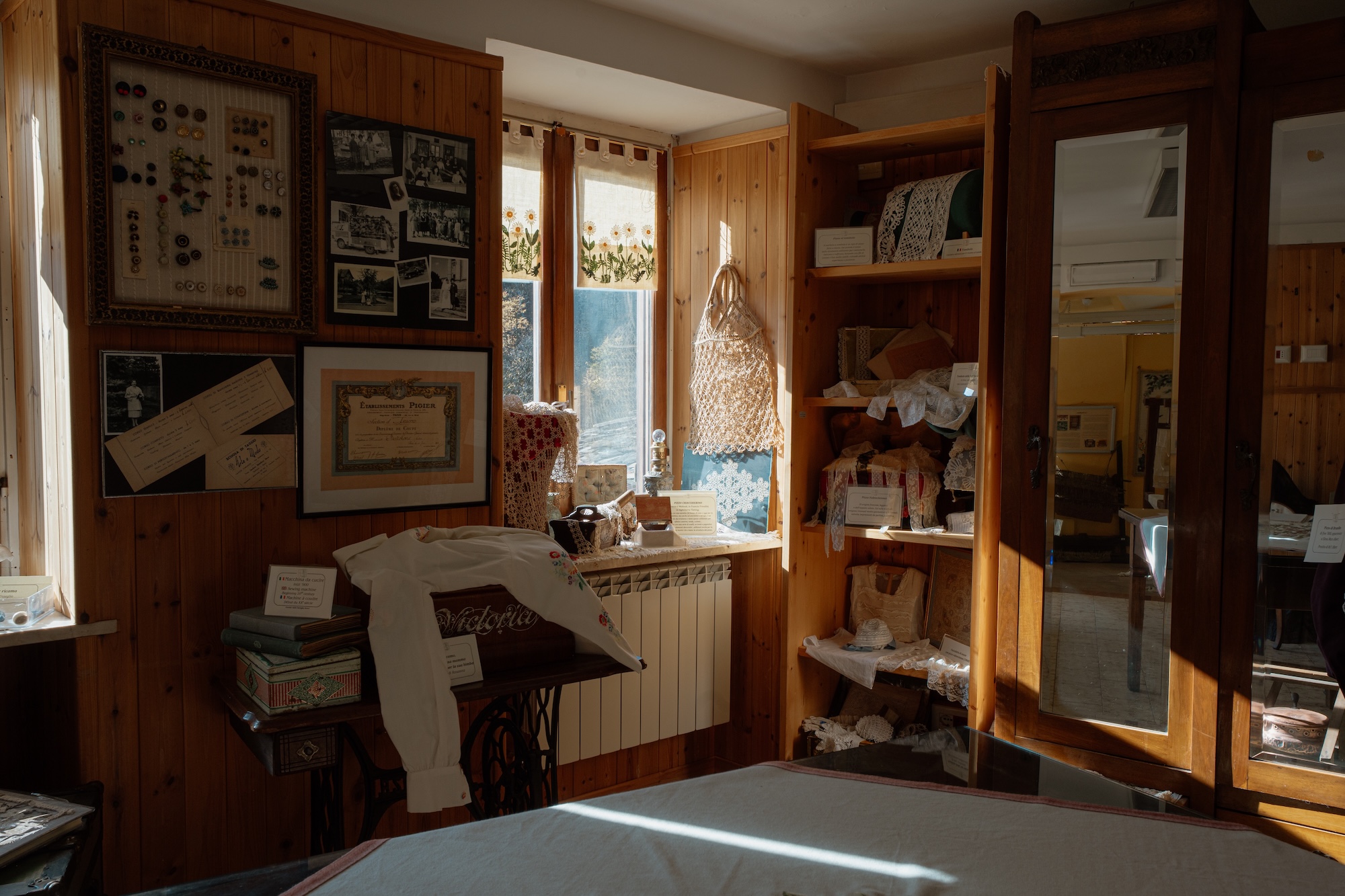 III sezione – abiti e accessori, la moda di un tempo. All’interno della sezione si trova una collezione di biancheria personale, di abiti e accessori, di corredini per bimbi e di biancheria per la casa databili dalla fine del XIX secolo alla prima metà del XX secolo.