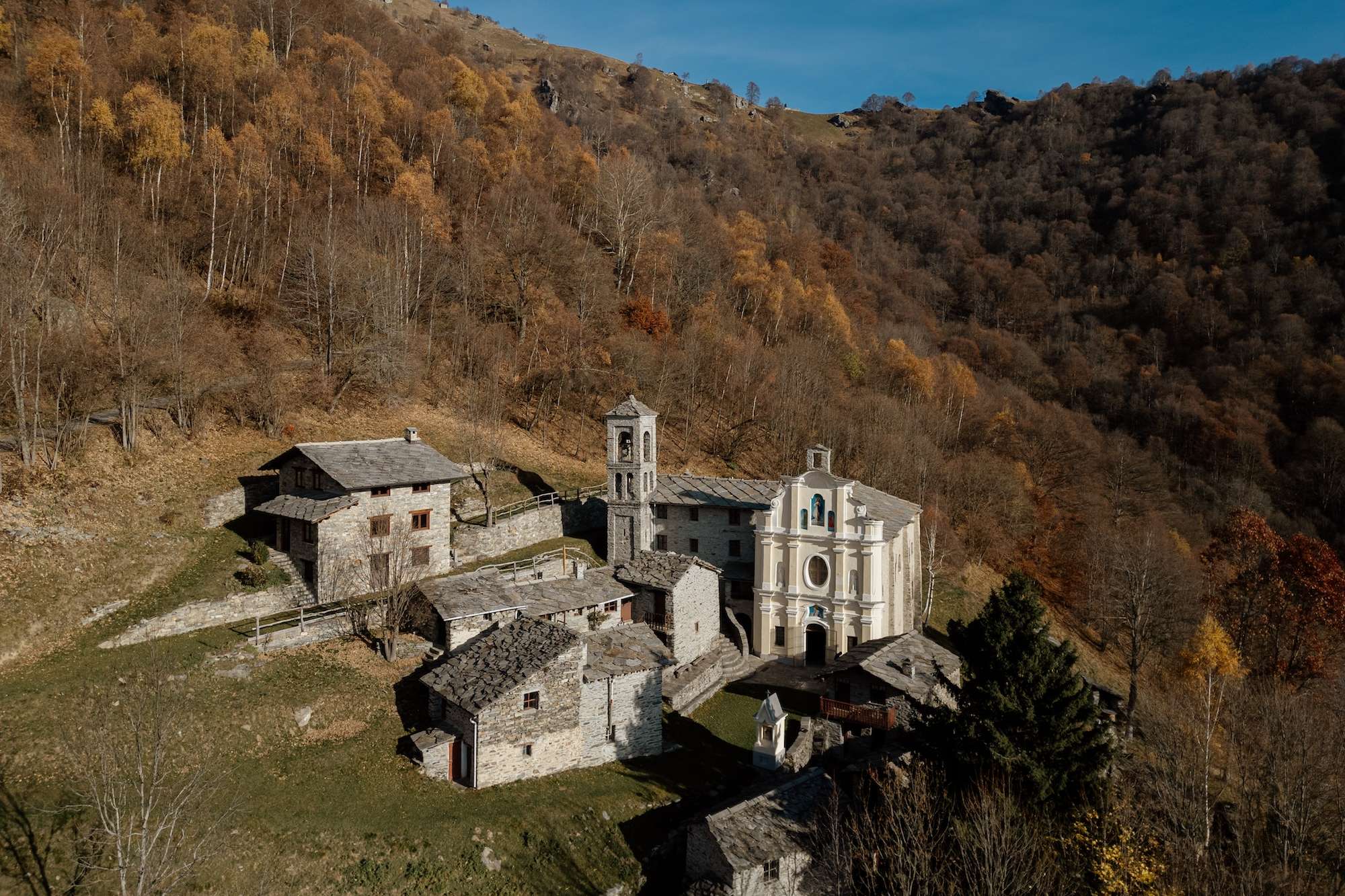 Adagiata su un luminoso pianoro e circondata da case in pietra, la frazione è dominata da un elegante santuario barocco, da secoli luogo di culto e di passaggio verso gli alpeggi. Un edificio che racconta una spiritualità profonda, intrecciata a riti antichi e alla vita quotidiana della montagna.