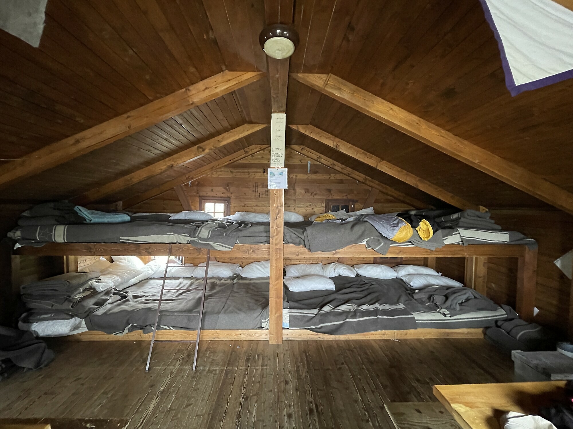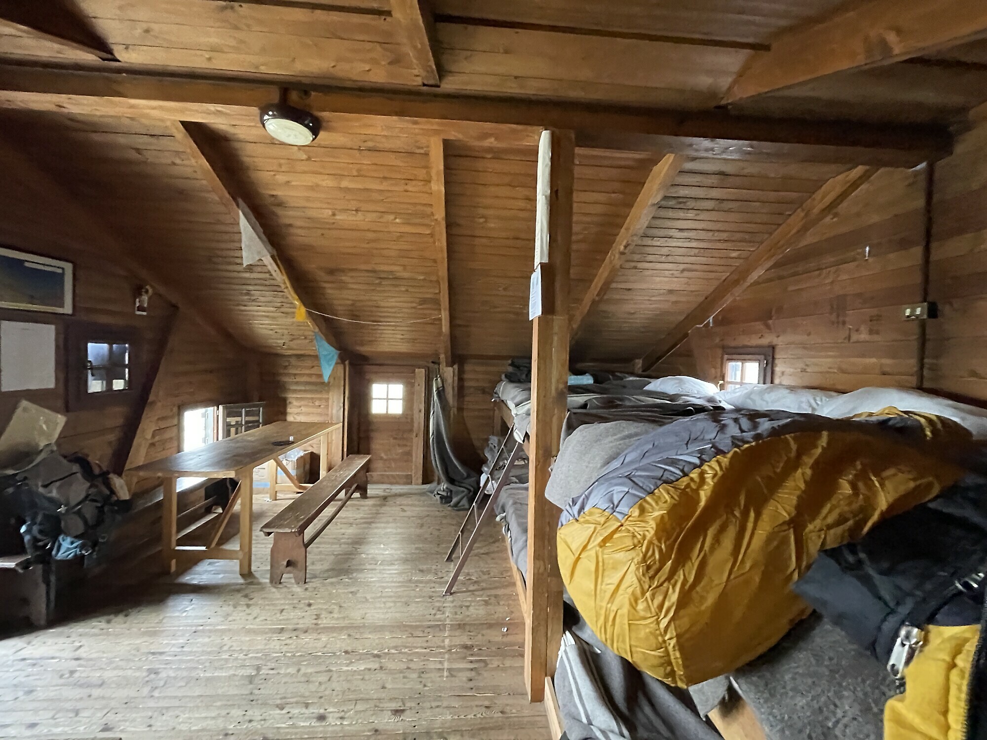 16 posti letto, dotata di illuminazione, letti con coperte, materassi, cuscini e tavoli al suo interno.