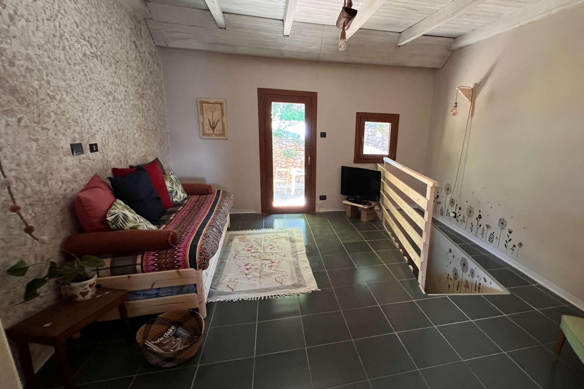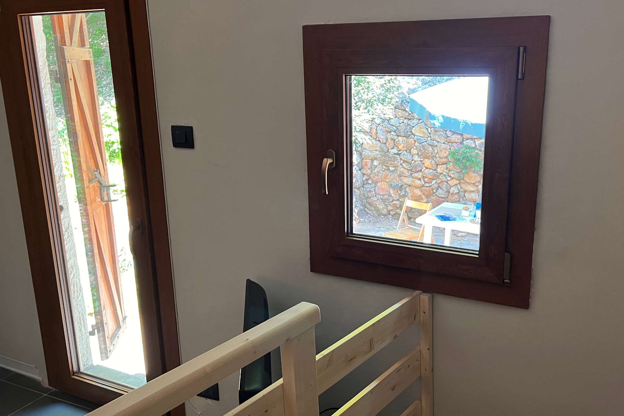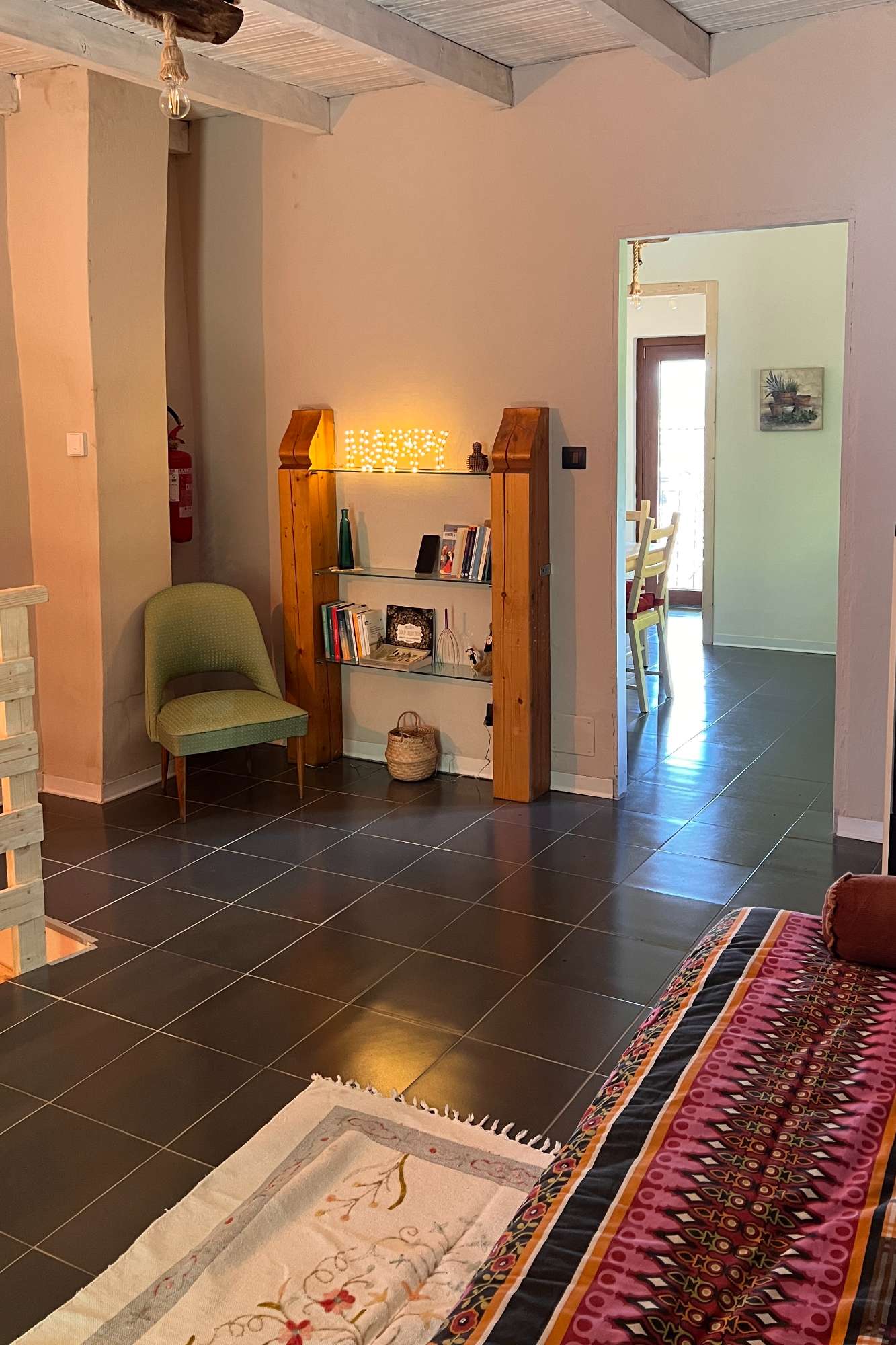 Dal salotto, una scala conduce al piano terra, dove troverai una stanza disimpegno e un’ampia camera da letto con un angolo lettura accogliente. Da qui, potrai uscire sulla terrazza per goderti il sole e il canto degli uccelli.
