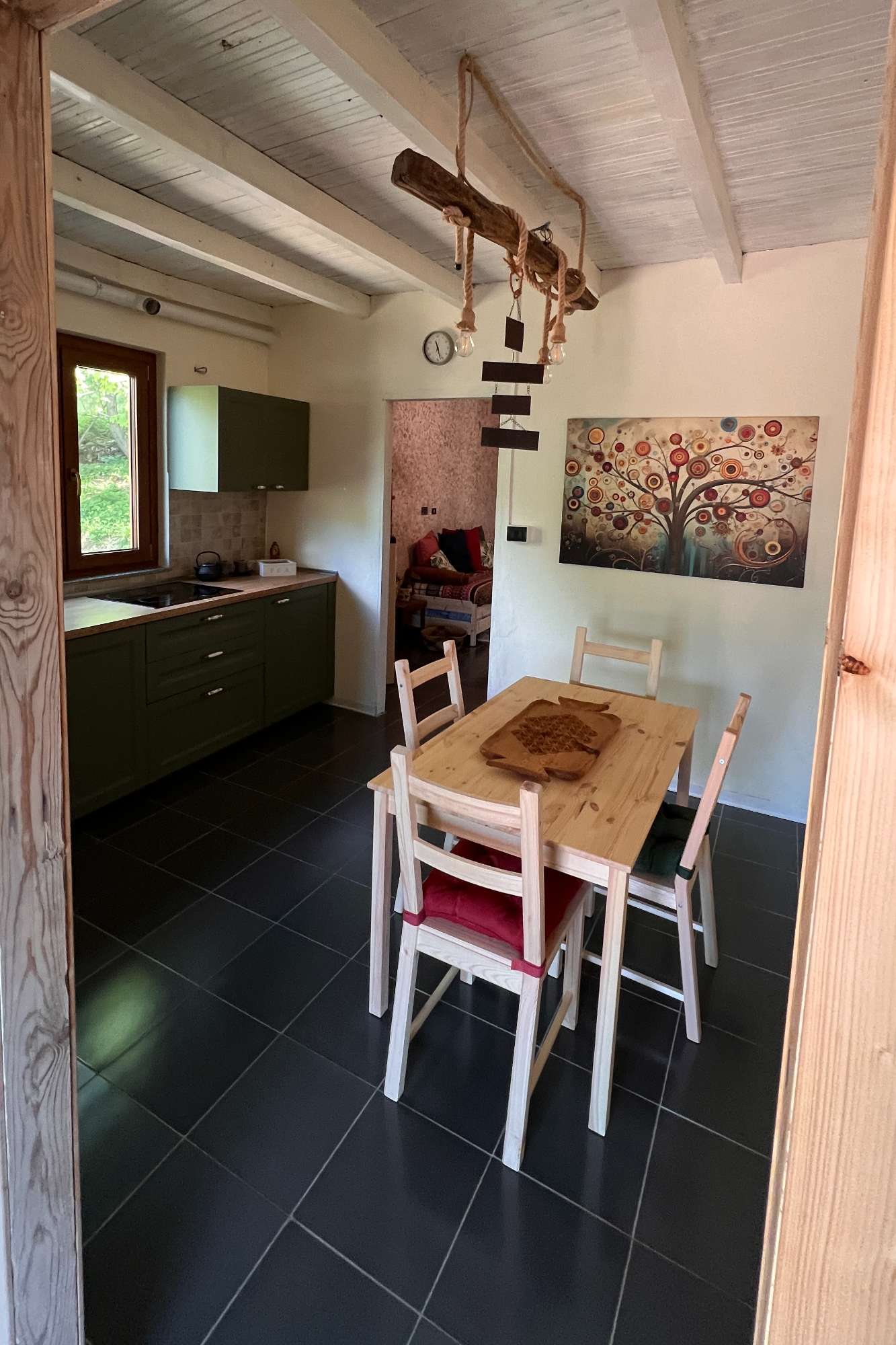 La Casa: Benvenuti nella nostra casa immersa nel bosco, un rifugio accogliente dove la natura abbraccia ogni angolo. Attraversando il giardino, entrerai in un ambiente caldo e invitante. Al primo piano, troverai un ampio salotto con un comodo divano letto per due persone, un televisore per i tuoi momenti di relax e una stufa a pellet che diffonde un calore avvolgente in tutta la casa. La cucina spaziosa, con una finestra che si affaccia sul bosco, ti permette di cucinare mentre ammiri la bellezza naturale circostante. Potrai gustare i tuoi pasti su un ampio tavolo per quattro persone, perfetto per momenti conviviali. Al primo piano, c’è anche un bagno ben attrezzato con lavandino, bidet, water e una grande doccia per il tuo comfort.