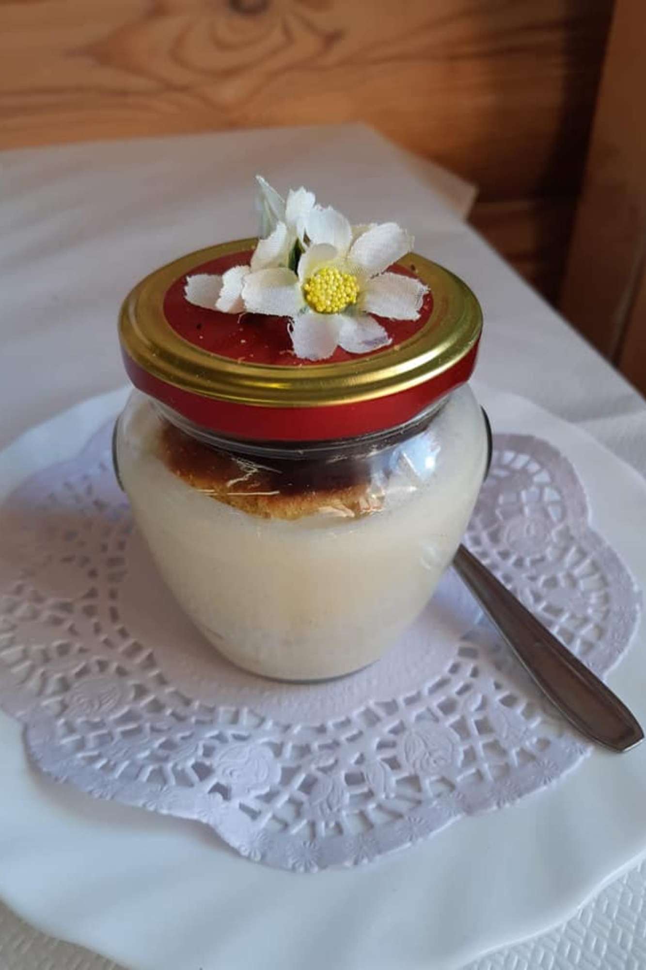I dolci sono fatti in casa e comprendono torte e creme artigianali, il tutto condito ed impreziosito da un impagabile panorama che spazia dal Gran Paradiso al Monte Rosa.